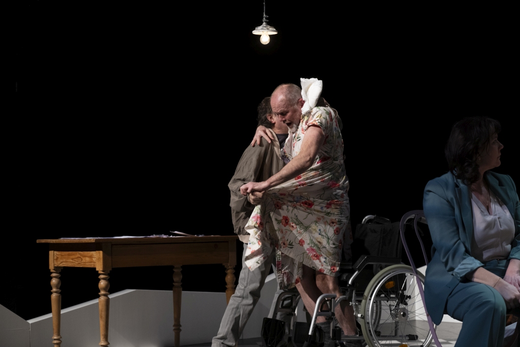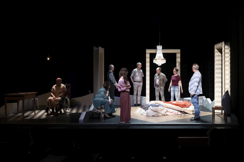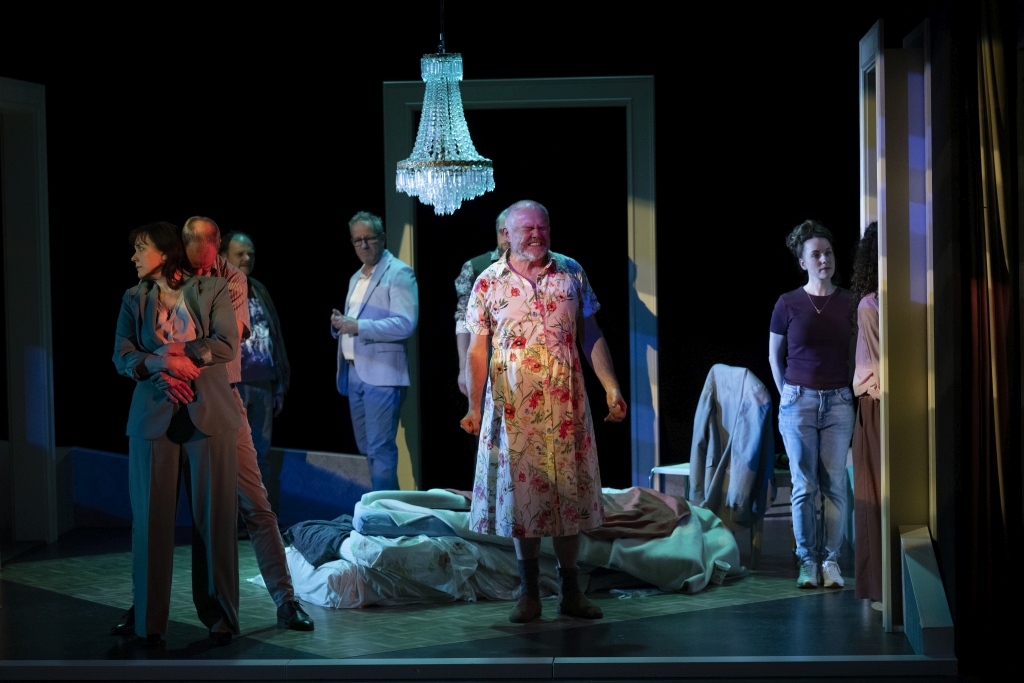 "The portrayal of the apartment owner, who is clearly suffering from dementia, is also impressive: moments of mental clarity alternate abruptly with disorientation—a dynamic that is both moving and reveals the tragic dimension of the situation. Overall, the production thrives on the ensemble’s interplay, its rhythm, tension, and precise timing."
